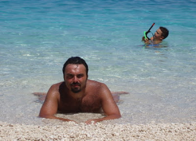 Comunque, visto che mi amate tanto per cosa scrivo, per come lo scrivo ma soprattutto mi amate per quanto sono attraente, eccovi un intenso primo piano mentre sullo sfondo Maicò tramena con una maschera subacquea...
